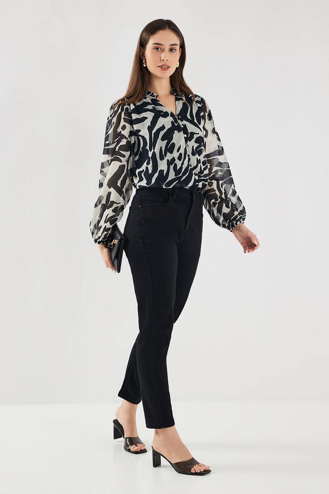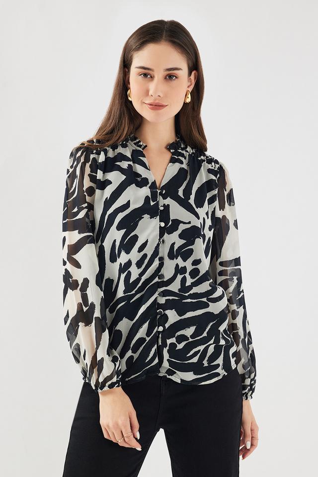 Home Women Wear FRATINI Animal Print Georgette Collared Women’s Top