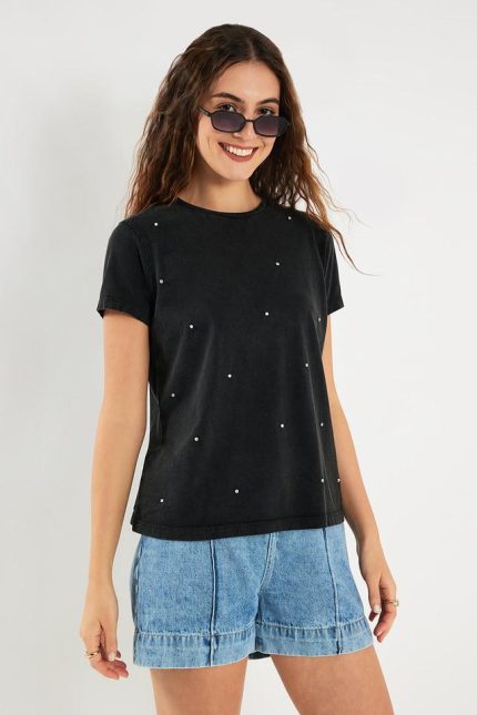 LIFE Embellished Cotton Round Neck Women's T-Shirt ₹399.00