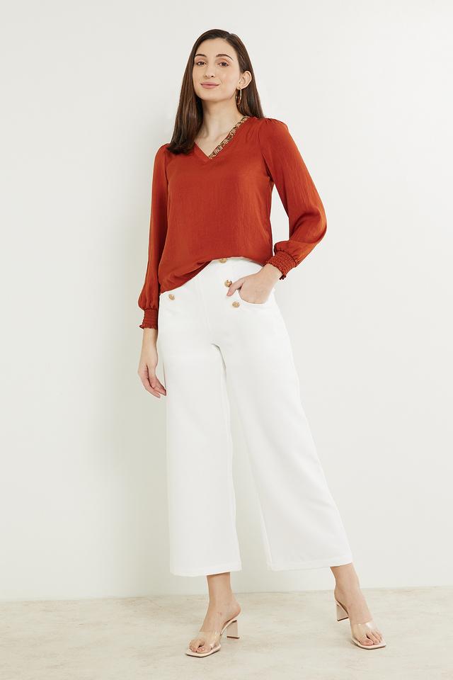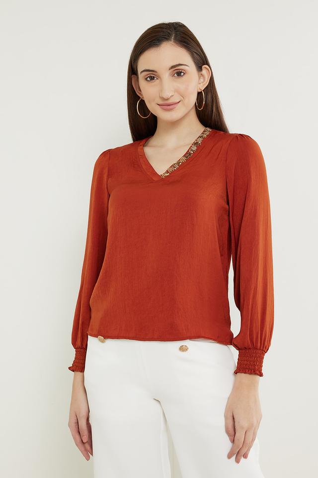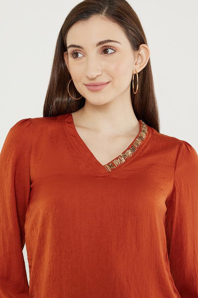 Home Women Wear FRATINI Embroidered Polyester V Neck Women’s Top
