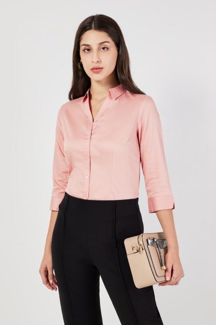 STOP Solid Collared Cotton Women’s Formal Wear Shirt