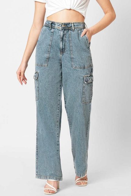 ONLYHigh Rise Light Wash Cotton Straight Fit Women’s Jeans