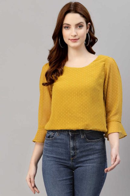 NEUDIS Solid Chiffon Boat Neck Women’s Top
