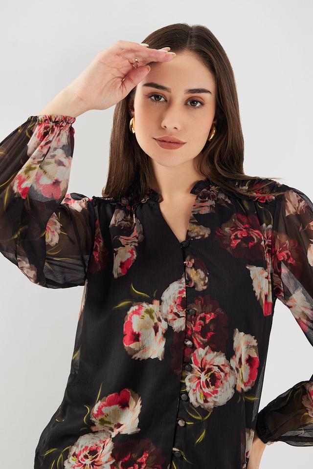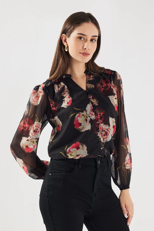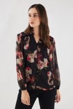 Home Women Wear FRATINIFloral Chiffon V-Neck Women’s Top