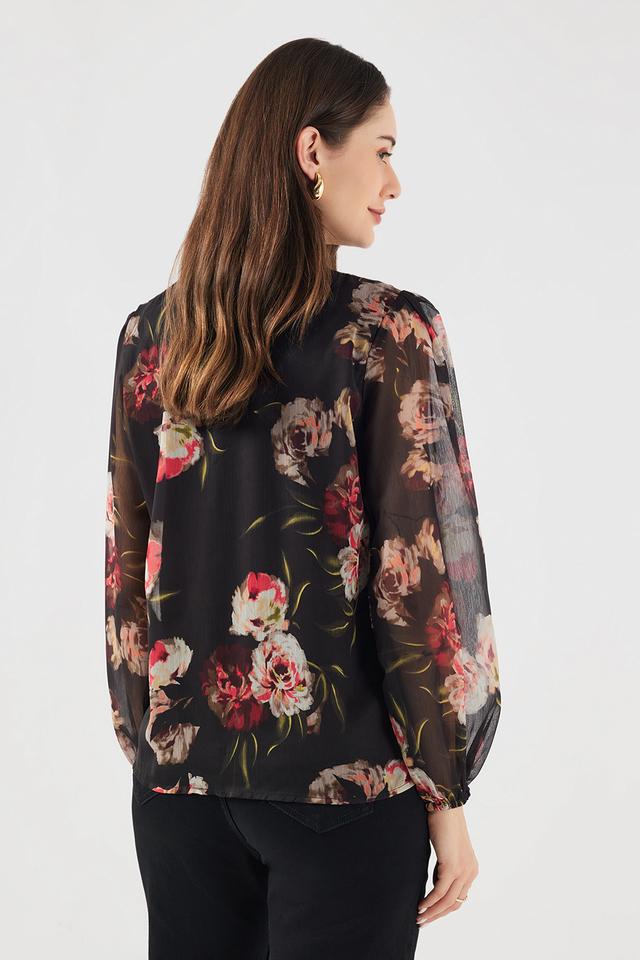 FRATINIFloral Chiffon V-Neck Women’s Top